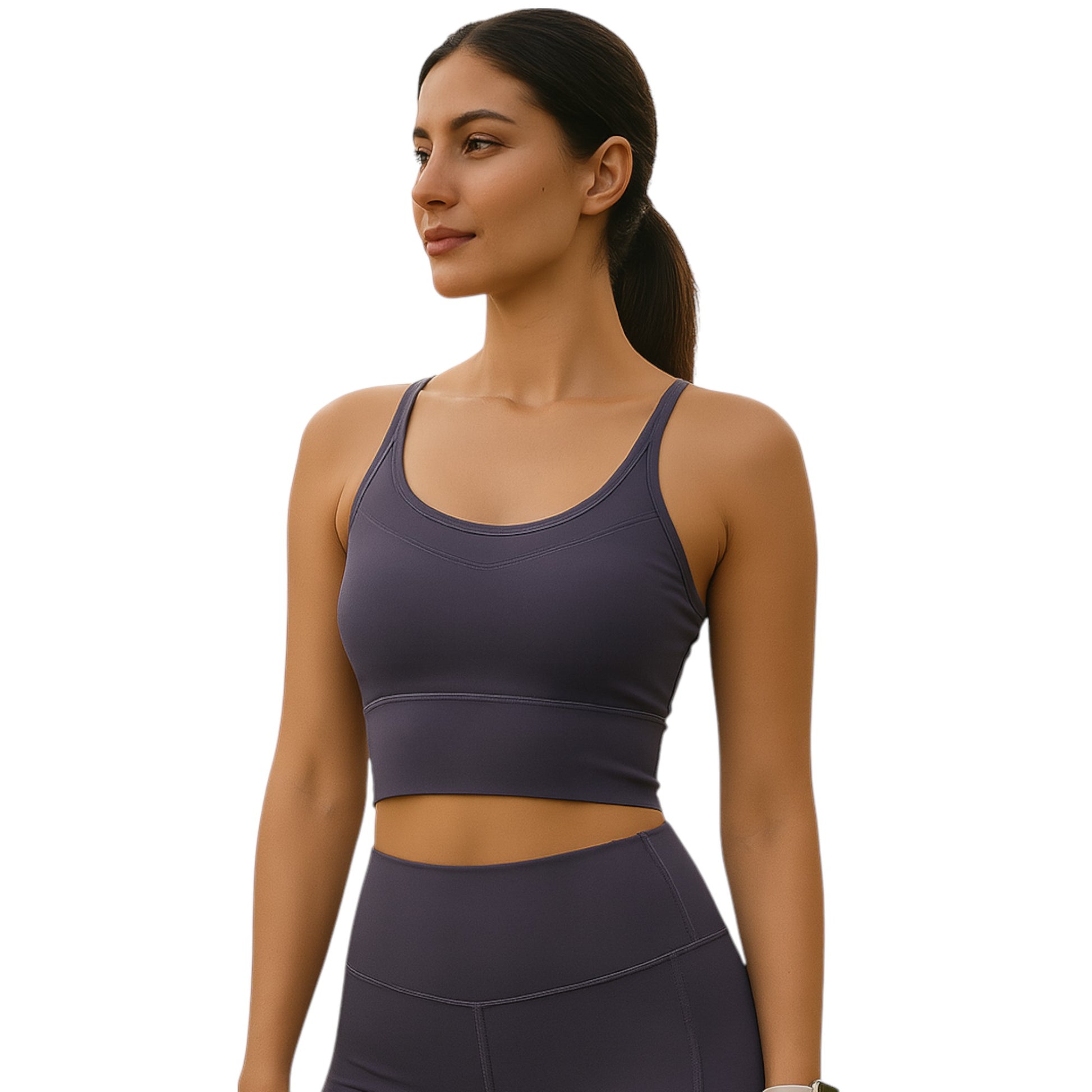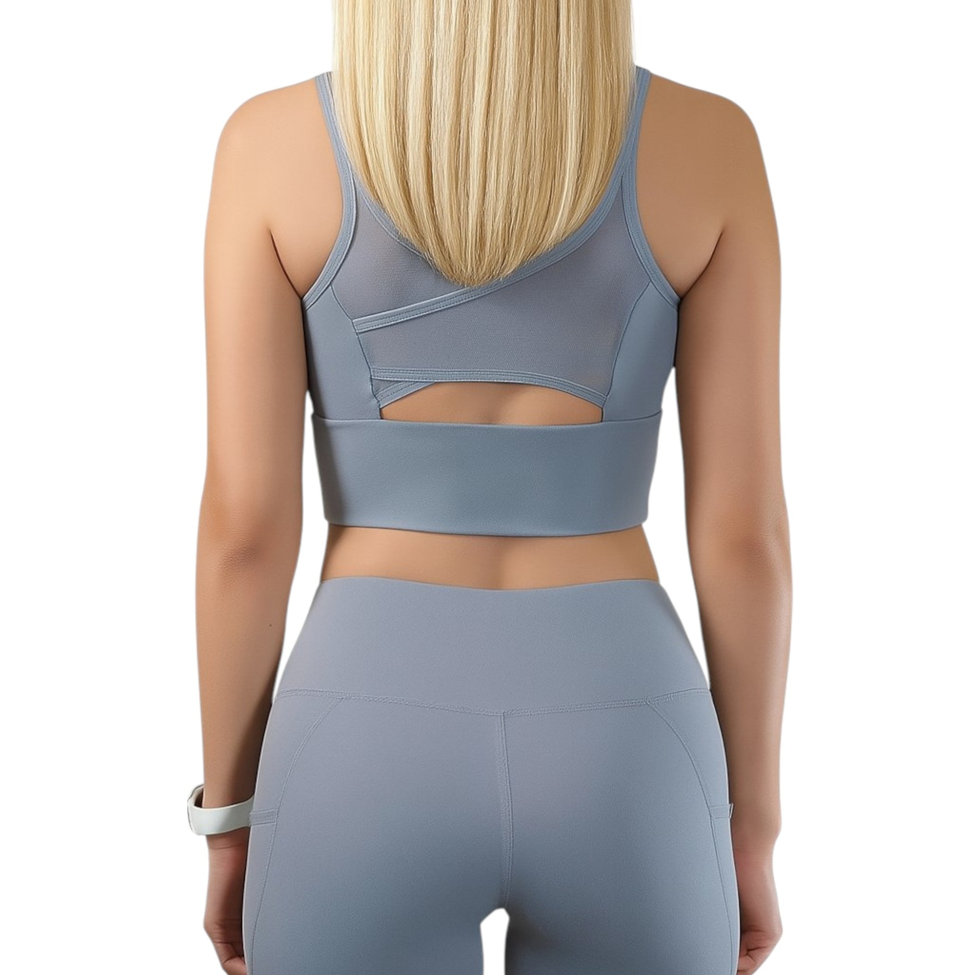 SPORTS BRA DESIGN: Features a stylish criss-cross mesh back design that enhances breathability while providing reliable support for various activities